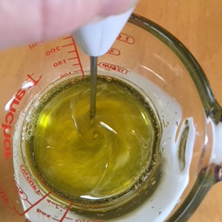 Combine oils and beeswax in a glass measuring cup. Melt by placing glass in a pot with one inch water. Warm water on medium heat until beeswax is melted. I like to melt my wax and oils on a candle warmer. It takes a little longer, but there’s no water involved that may cause bacterial to form. Mix well when beeswax is melts completely.