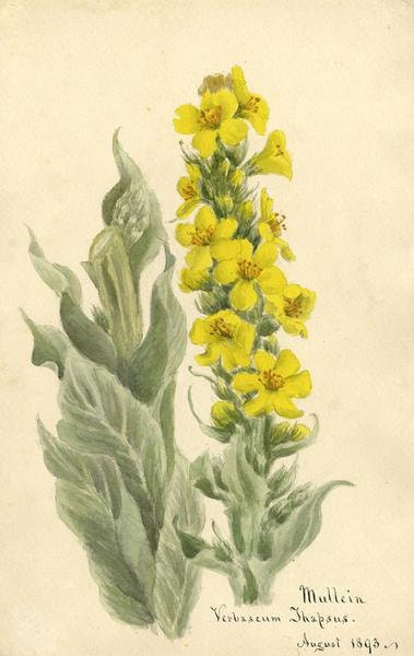 Common mullein (Verbascum thapsus) grows up to seven feet tall and has a single stem with large, thick, velvety leaves and pale-yellow, slightly irregular flowers. Common mullein is the type of mullein that you will most commonly find in mullein products.Mullein has been used medicinally since ancient times, and its uses and popularity only seem to be increasing as time goes on.
