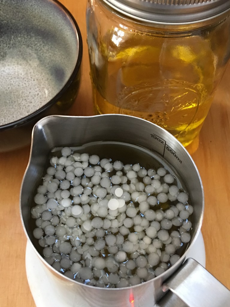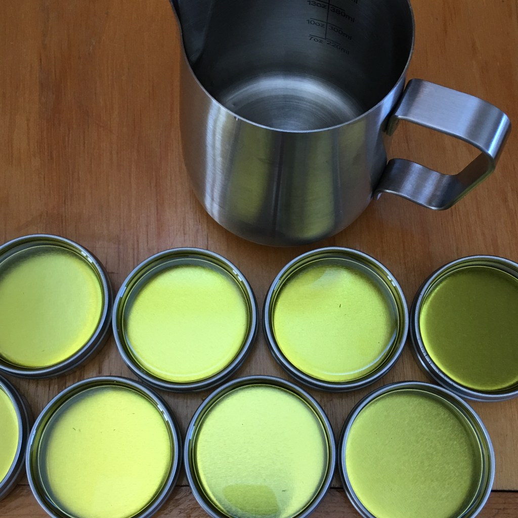 Melt infused oil and beeswax using method 2 or 3 above. To test its consistency, dip a cool spoon in the warm mixture and let cool. If you want it thicker, add more beeswax, a little at a time, until it’s perfect.