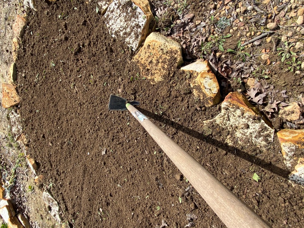 This is my small garden so far. I have plans to make it larger in the fall and next spring. The beds are deeper than it looks. The roots have plenty of space to expand. You can see how deep the second bed is. I’m adding mulch between the beds. They’re wide so my cart can fit between the beds.