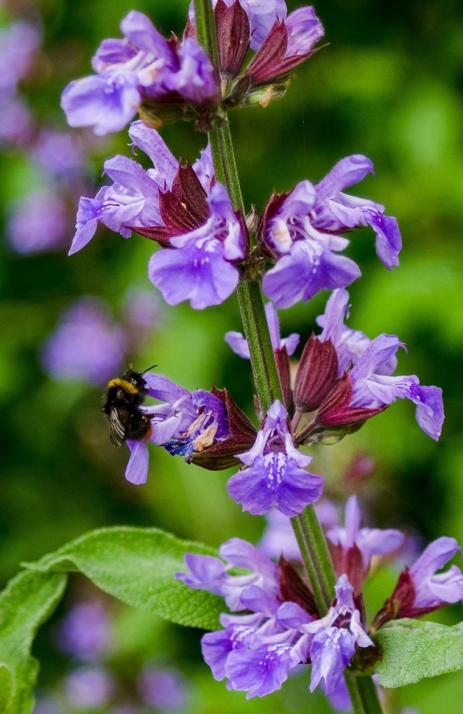 Sage is a hardy perennial with pretty, grayish-green leaves that like as good in a perennial border as they do in a vegetable garden. It grows spikes of spring flowers in different colors, including purple, blue, white, and pink.