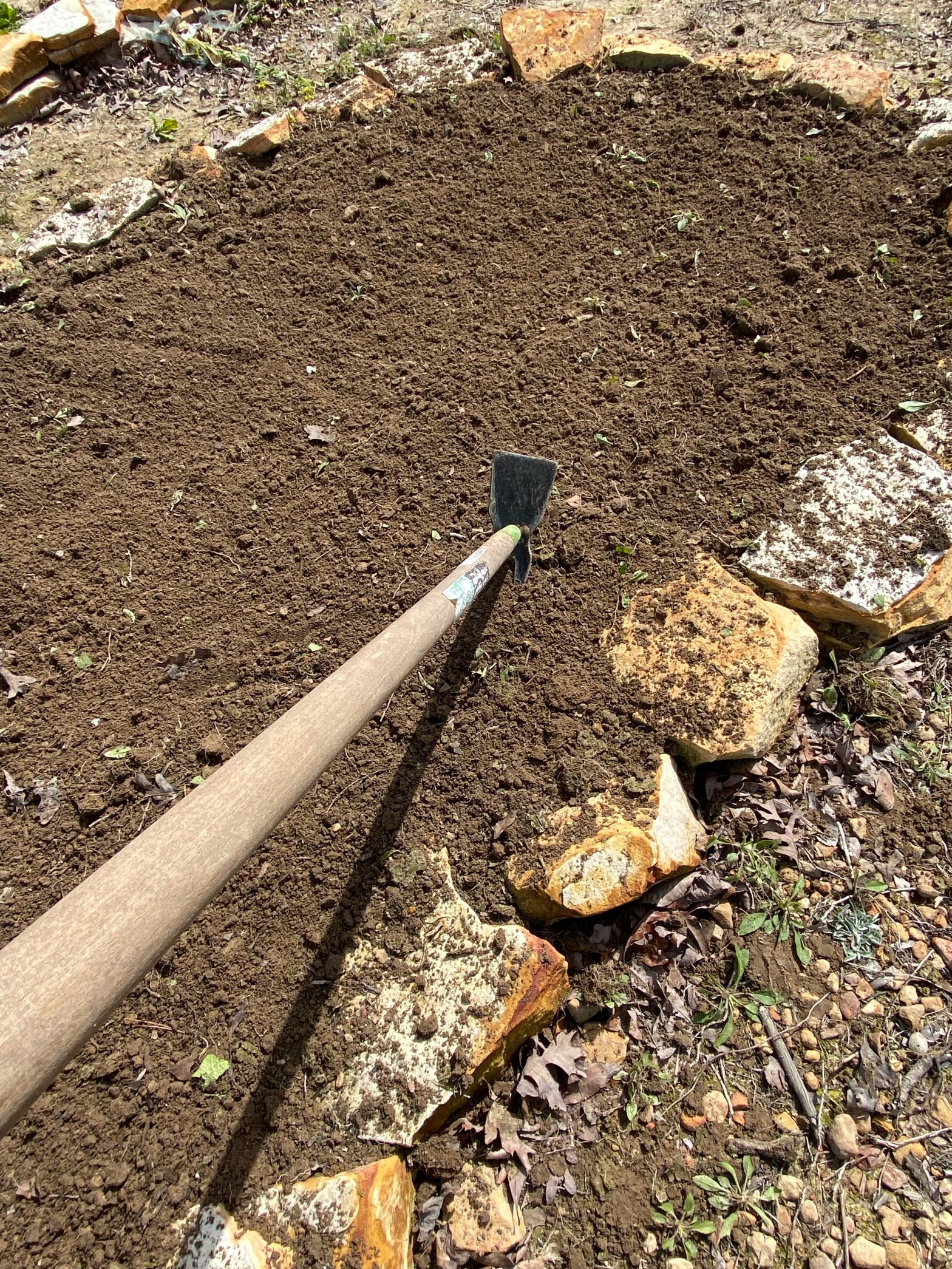 Finally getting my garden beds ready for spring planting. Because this is our first year on our homesteading journey, our garden beds are new. We have plenty of stones, so we are putting them to good use by making stone raised beds.