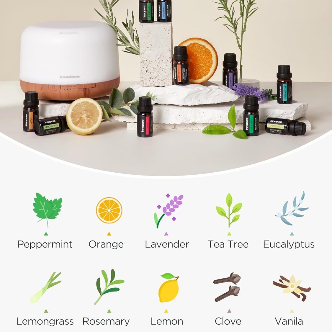 Cool Mist Aromatherapy Diffuser & 10 Essential Oils Set