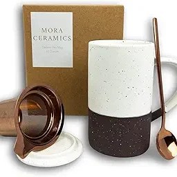 Ceramic Teacup with Loose Leaf Infuser, Spoon and Lid, 12 oz.